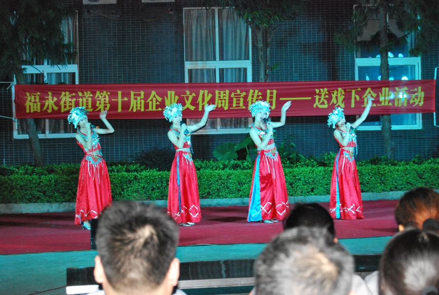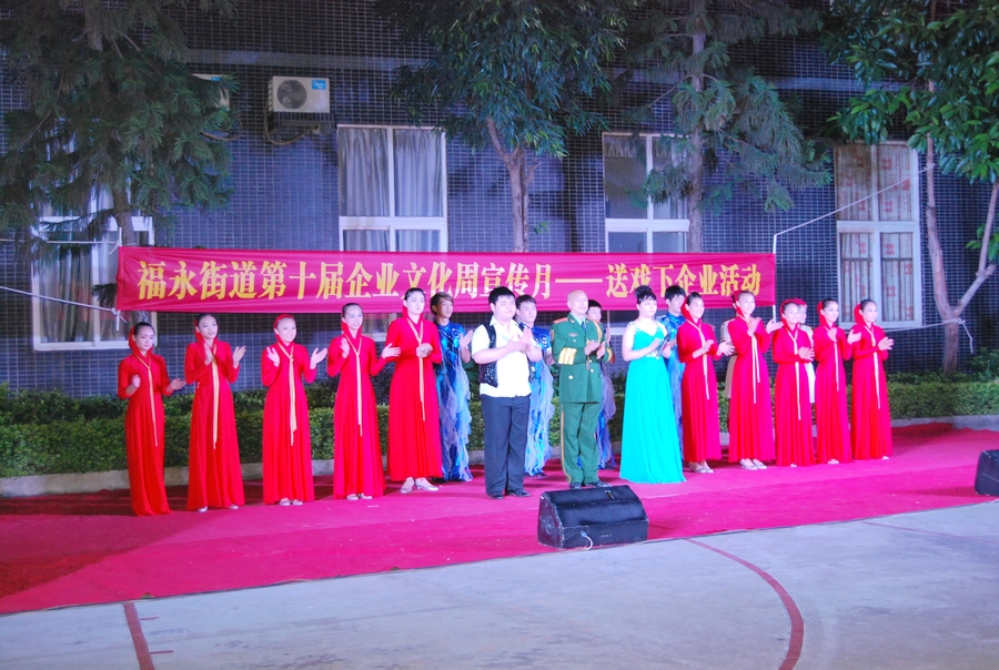 福永街道今年開展文藝進社區、進企業活動,2013年5月31日晚上,特派了楚風藝術團到大陽公司慰問演出,表演了豐富多彩的文藝節目,給廣大職工帶來了歡樂,增添了精神文化享受。