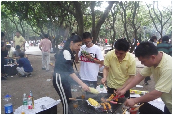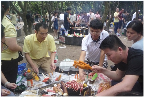 來吧,精致的小饅頭,顆粒飽滿的大玉米,紅紅的火腿,嫩嫩的大雞翅,大雞腿,長長的茄子,長長的廋肉串,多么豐富的美味佳肴。