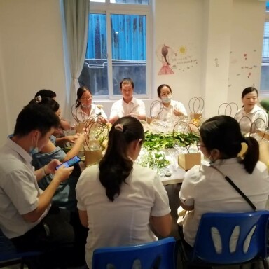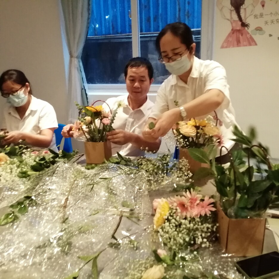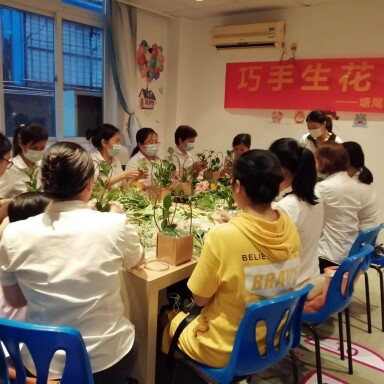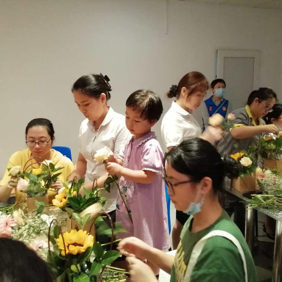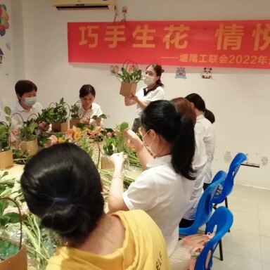 2022年8月25日塘尾工聯會送課入企活動—大陽插花培訓活動在大陽公司舉行,大陽公司工會大力配合,積極組織辦公室的女同胞參加學習,還有少數男同胞和一線女同胞以及員工家屬參加了此次活動。桌子上擺滿了五顏六色,絢麗多姿的鮮花,要把這些鮮花插在提籃里,制成非常好看的花籃,對于這些新手來說,確實是一大挑戰。但是有專業的老師指點,一切都不是問題, 老師在臺上認真講解插花的知識和技藝, 學員們府首貼耳,用心聆聽。老師從最基本的構思講起,一步一步教大家怎么做,先插什么花,后插什么花,插花的高度和寬度是多少,里面插什么花,外面又插什么花,怎么才能有層次感,怎么樣才能突出主角,怎么樣才能美觀大方。老師講得非常生動有趣,并頻頻示范,學員們互動起來,照著去做,慢慢地籃子長出了花草,慢慢地籃子里開滿了鮮花,慢慢地籃子成為十分耀眼的作品, 最后老師教學員們怎樣系蝴蝶結,作品大功告成。40分鐘的插花培訓課程,學員們收獲頗豐,展示著自己的得意之作,喜悅之情溢于言表