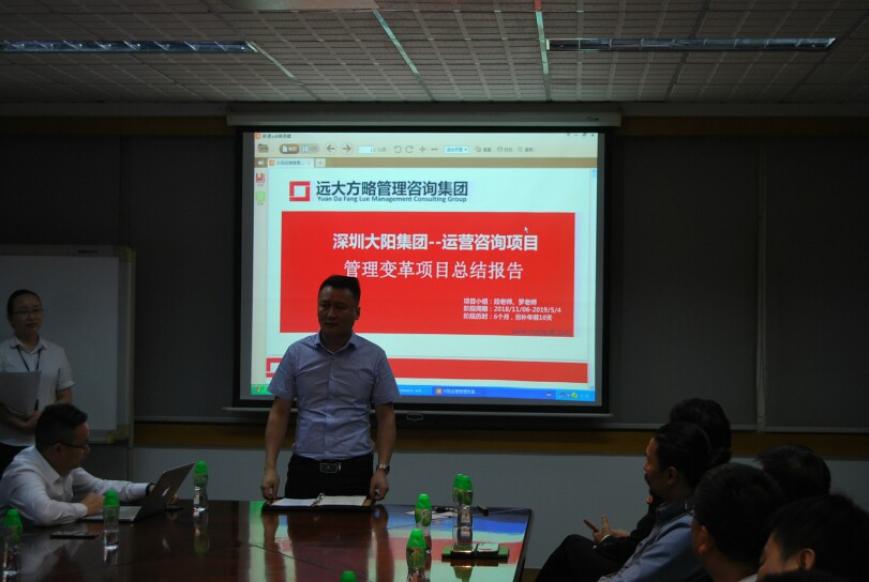深圳大陽集團2018-2019年管理變革總結大會于2019年5月14日在大陽公司二樓會議室隆重舉行,大陽集團董事長林木坤先生率領的大陽變革團隊和遠大方略大陽變革項目組成員參加了會議。