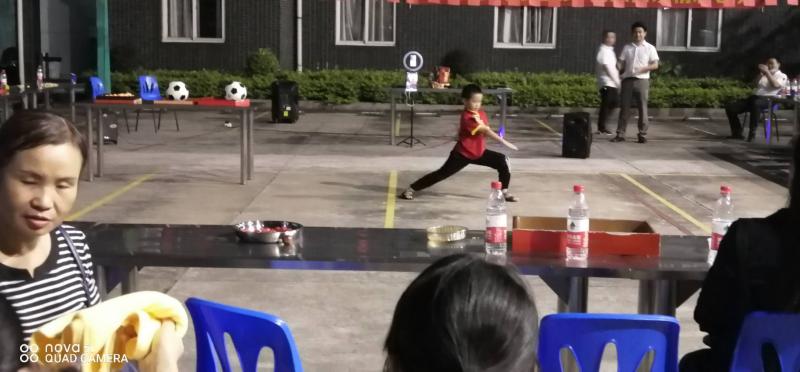 武術是中華民族的瑰寶,中華武術世界揚名,大陽少年對武術也產生了深厚的興趣,眼前這位穿著紅衫的小男孩像一片紅云在舞臺中招展,他的一招一式凝聚著武術的精華,展示著武術神奇的魅力,武術在他的腳下牢牢地扎下了根。