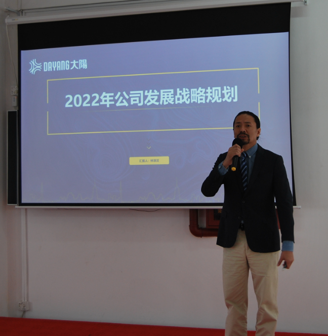 大陽公司2022年戰(zhàn)略發(fā)布會。于2021年12月18日上午在深圳大陽五樓會議室隆重舉行,參加會議的有大陽公司決策委員會、大陽公司全體管理職員和班組長,主持人為大陽行政部部長孫美麗。首先大陽集團(tuán)董事長林木坤先生做會前總動員。老板指出,過去2年的疫情,公司受到了很大的影響,但是在大家的齊心協(xié)力下,大陽度過了難關(guān),大陽始終站在行業(yè)的最前線,竭誠為客戶服務(wù),贏得了客戶的認(rèn)同,大陽不斷地開拓進(jìn)取,找到了一條適合大陽的發(fā)展之路。老板指出,越是在困難的時刻越是能體現(xiàn)一個人的毅力,2021年原材料價格不斷上漲,銅價上升到一個高位,但是公司把握了正確的經(jīng)營方向,也獲得了銀行的大力支持,有的銀行對我們的支持力度前所未有,每一位同事都在工作崗位上認(rèn)真堅守,默默付出,為大陽美好的未來而拚搏,感謝大家的辛勞和付出。老板指出大陽紫金是大陽歷史上最大的項目,為大陽未來的發(fā)展打下了良好的基礎(chǔ),現(xiàn)在的大陽相比之前的大陽有很大的進(jìn)步。